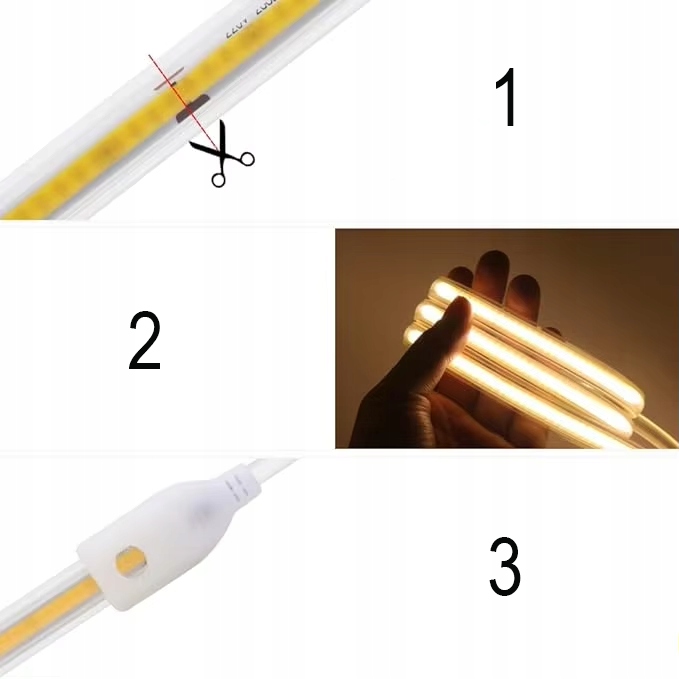 ⭐ Набір світлодіодних стрічок COB IP67 3000K PREMIUM 220/230V - 5 метрів - ТЕПЛИЙ БІЛИЙ