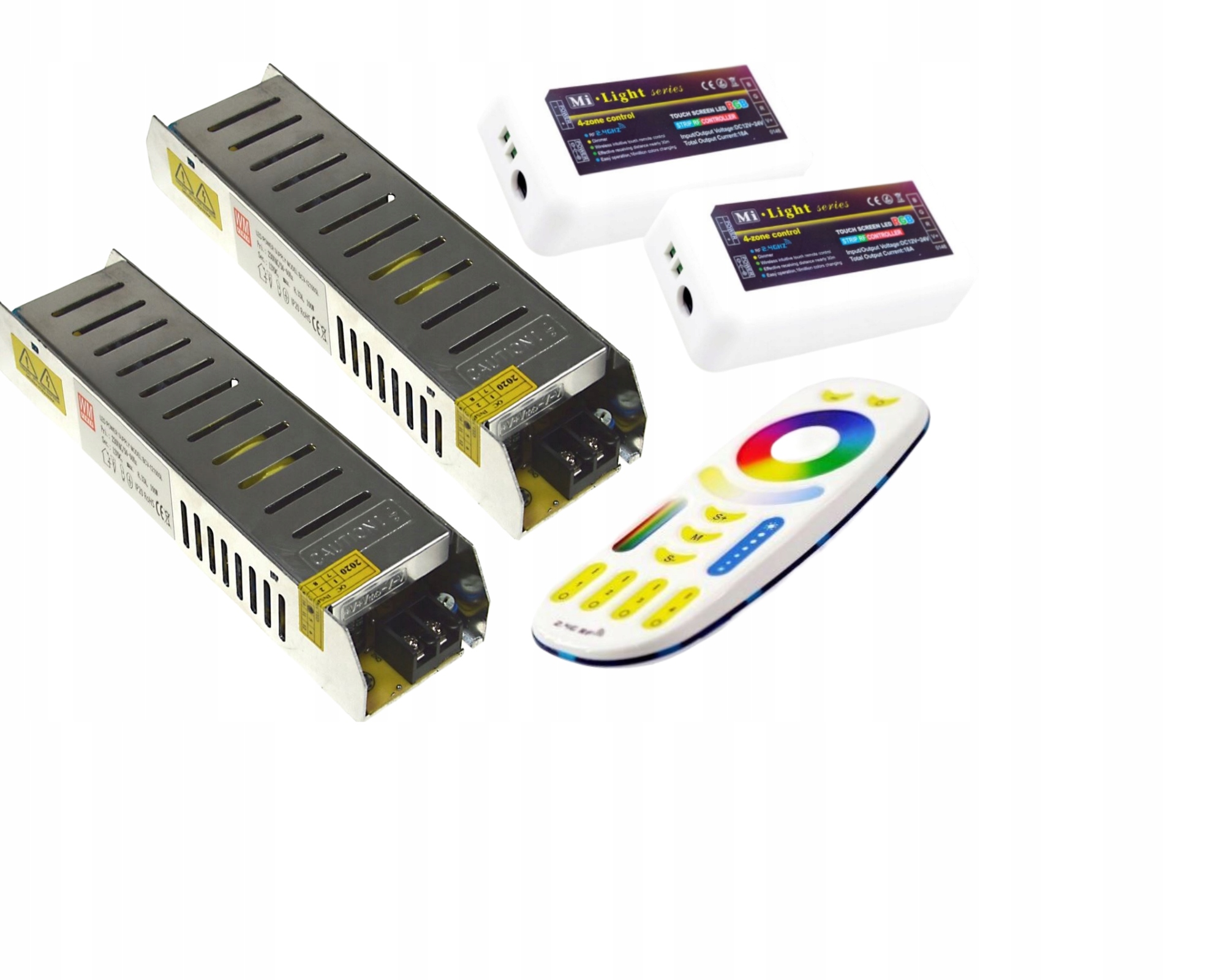 В набір входять приймачі PREMIUMбездротова система Mi-Light. Використовуючи відповідний WiFi Hub/Router, ви можете також можна керувати сеткою зі смартфона (Android та iOS) - WiFi Hub. Завдяки цій системі ви можете створити дві окремі зони та керувати ними за допомогою одного пульта.