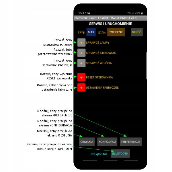 Омега ексклюзив - це найсучасніший драйвер із сімейства Smartleds, з великою функціональністю із додатком для смартфона/планшета , розробленого для зручної конфігурації, експлуатації та установки. Підтримка додатків дуже зручна та інтуїтивна. Далі - підключення програми з контролером (екран Bluetooth).