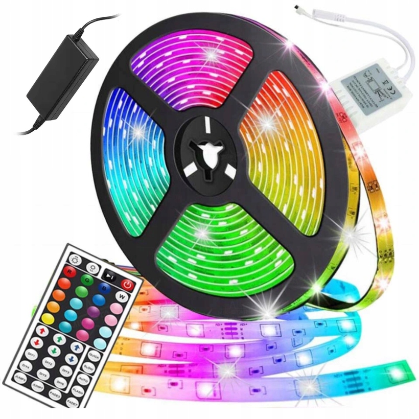 | Світлодіодна стрічка MIK-STAR | ОРИГІНАЛ | МАКСИМАЛЬНА ПОТУЖНІСТЬ 24 Вт | ВЕЛИКИЙ ПУЛЬТ 44 КНОПКИ | ВОДІЙ | БЛОК ЖИВЛЕННЯ | РІЗНОКОЛЬОРОВИЙ | RGBW | ОЦІНКА (А+) | IP 65 ВОДОСТІЙКИЙ | 5 МЕТРІВ | SMD 5050 | 270шт світлодіодів | 50 000 ГОДИН |