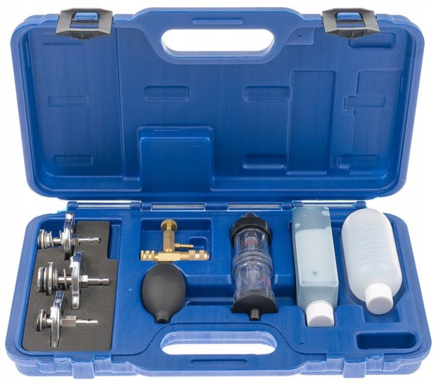 ✅ Пристрій дозволяє легко діагностувати та швидко виявити пошкодження прокладки головки. У разі пошкодження прокладки головки або самої головки частина вихлопних газів. містить, серед іншого, CO2 йде в систему охолодження. Принцип роботи приладу заснований на вимірюванні вмісту CO2 в системі охолодження. Реакційна рідина в камері тестера вступить в реакцію з газами системи охолодження і змінить колір у разі підвищення вмісту CO2. Двокамерна конструкція пристрою (з фільтром між камерами) дозволяє відокремлювати залишки в першій камері (наприклад, краплі теплоносія). що може негативно вплинути на результат тесту.