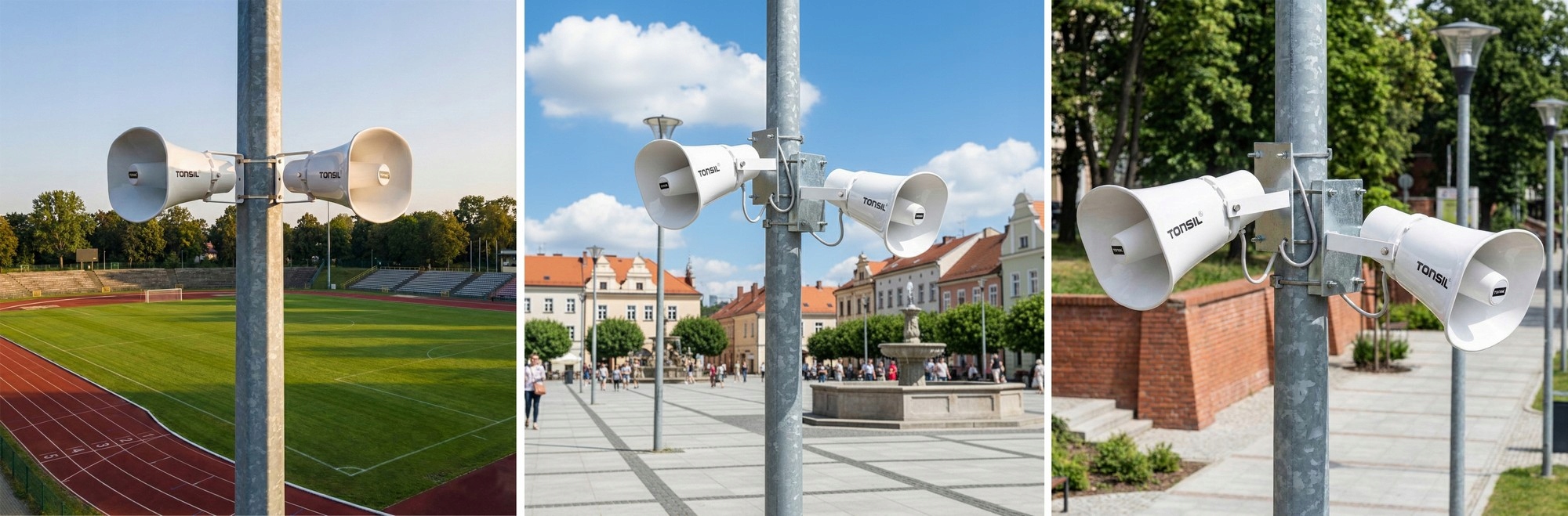 - Встановлення гнучкість: система 100 В/70 В дозволяє легко доставляти звук до віддалених точок за допомогою довгих кабелів без втрат - чудове рішення для магазинів, складів, відкритих майданчиків.