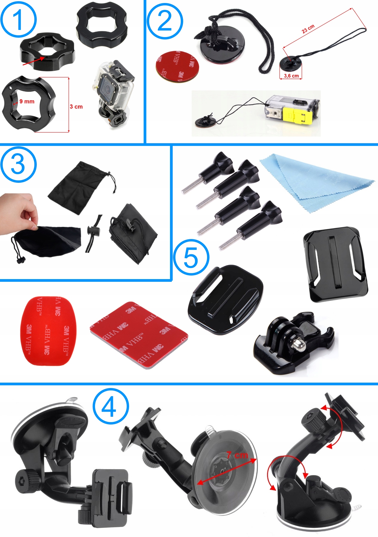 Найвища якість до найдрібніших деталей! Якісна заміна оригінальних аксесуарів - кріплення повністю сумісні один з одним, створюючи готовий до використання набір аксесуарів для Sony Action Cam. Вони можуть не підходити до оригінальних кріплень.
