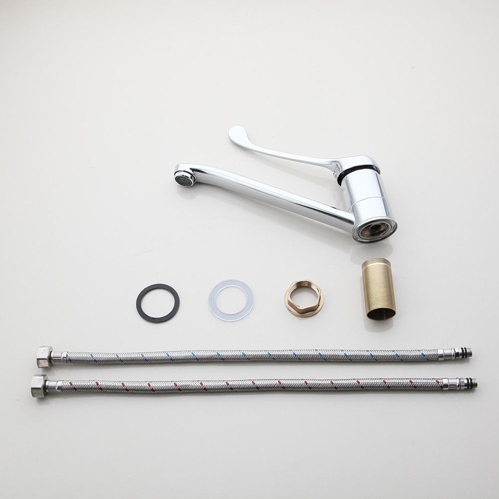 Завдяки спеціалізованій ручці ви можна керувати змішувачем ліктем або передпліччям, що дозволяє уникнути торкання змішувача рукою
