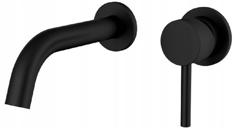 Змішувач для умивальника настінний, одноважільний. Корпус виготовлений з латуні з чорним матовим покриттям. Використання керамічного вентиля всередині змішувача дозволить використовувати його протягом багатьох років. Чорний колір фурнітури для ванної кімнати – це тренд, який можна побачити в кожному салоні ванної кімнати.