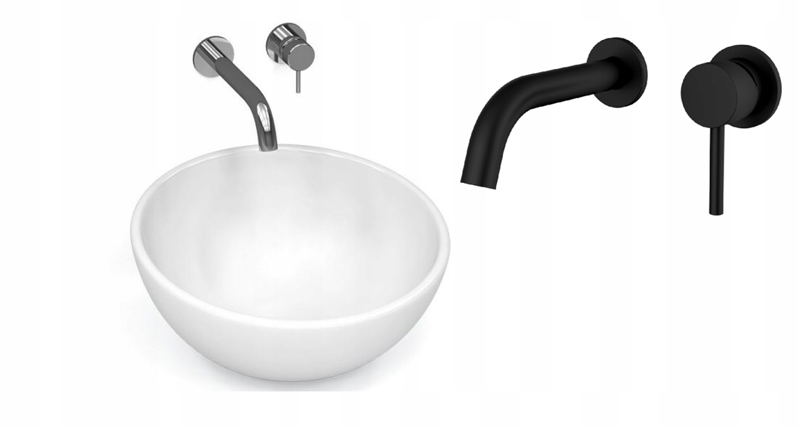 Комплект: умивальник настільний керамічний 41CM + елегантний чорний настінний змішувач прихованого монтажу