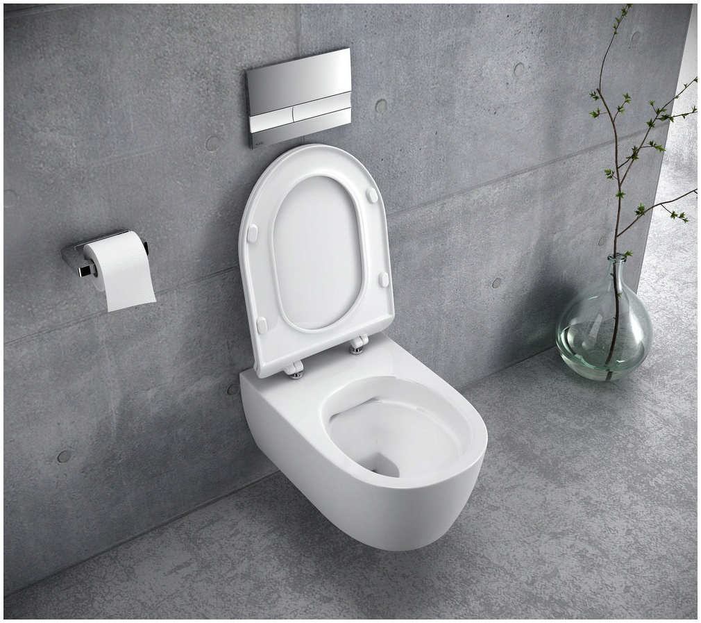 Туалетний набір Doto Pure Rim. Нове рішення без оправи полегшує утримання в чистоті. Покриття Clean Control дозволяє легко видалити накип та інші забруднення з поверхні. Покриття також дозволяє зменшити використання хімікатів і води під час видалення бруду. Сучасна форма чаші з прихованими кріпленнями полегшує утримання ванної кімнати в ідеальній чистоті. Виріб виготовлений з високоякісної кераміки, доступний в наборі Duo Pack з повільно закривається, легко знімним сидінням SLIM. Дошка виготовлена зі стійкого до подряпин матеріалу Duroplast, а металеві петлі забезпечують додаткову стійкість. Завдяки системі змиву води 4,5/3 л Doto Pure Rim є економічним і екологічним рішенням для кожної ванної кімнати. Чаша доступна в комплекті з сидінням, що повільно закривається.