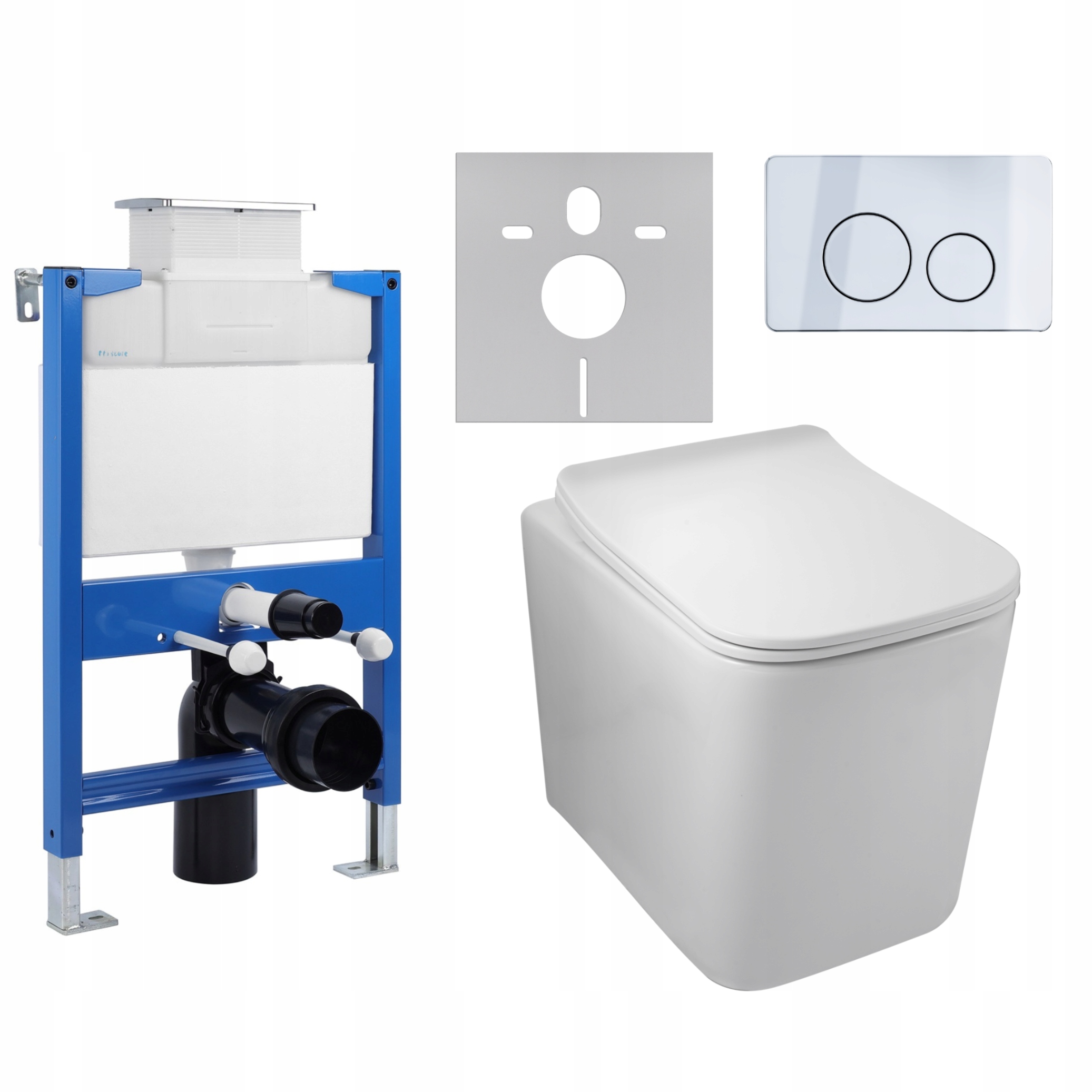 - Повний монтажний комплект для рами та чаші: (різьбові стрижні для кріплення чаші, захист установки завдяки ревізійний отвір, захисні пробки, колінний клапан 1/2 з роз’ємом, кутове з’єднання, кутове з’єднання для підвісного унітазу, перехідна розетка, розпірні кронштейни для панелі керування, панель керування змивом – з елементами кріплення, ущільнювальний мат, кронштейни, шайби, гвинти )