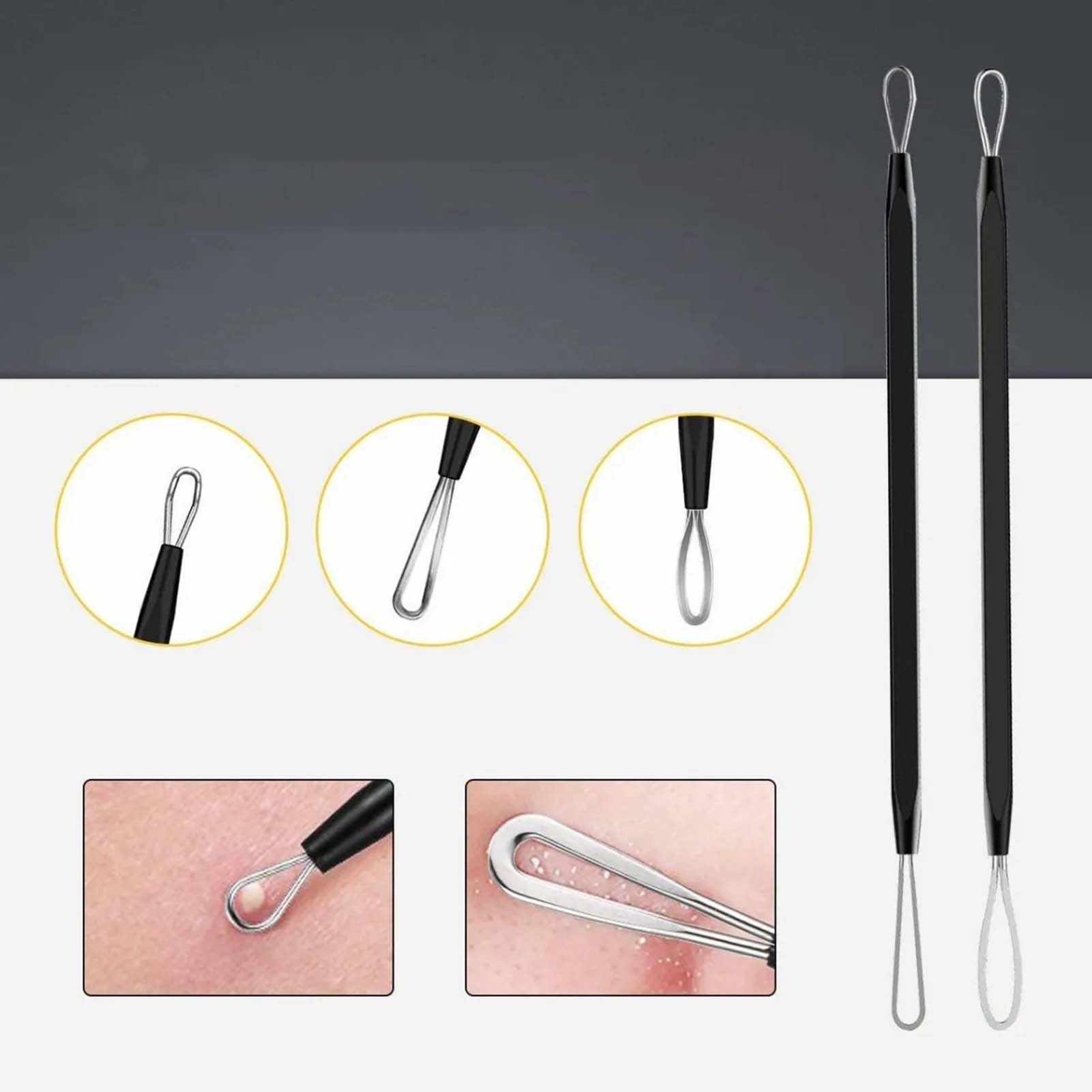 3. 10 IN 1: Набір включає 6 різних типів голкових петель, 3 пінцети та 1 голку. Ви можете вибрати інструмент, який найкраще підходить для вашого розміру, щоб видалити прищі та чорні точки.