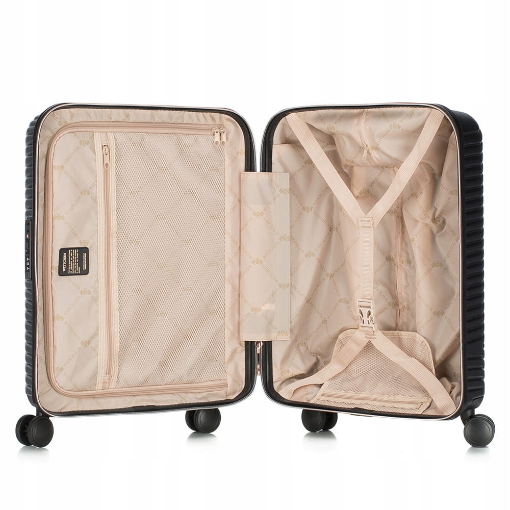 Стильна валіза WITTCHEN 56-3P-84S-10 від GL Style Колекція чорного кольору, виготовлена з полікарбонату з матовим покриттям. Легкість і висока міцність валіз забезпечують надійний захист речей, що перевозяться, і комфорт переміщення з багажем. Маленька валіза відповідає вимогам до ручної поклажі більшості бюджетних авіакомпаній (Easy Jet, LOT, Lufthansa, Wizz Air). Кожна валіза оснащена чотирма подвійними колесами з ABS з гнучким покриттям, телескопічною ручкою і гумовими гнучкими ручками (у випадку з маленькою валізою тільки верхня ручка). Середні та великі валізи мають чотири бічні ніжки для зручного розміщення. Безпека у вигляді замка TSA є додатковою перевагою. Завдяки цьому під час митного огляду багажу ми можемо гарантувати неінвазивне відкриття валізи та її повторне закриття, не пошкодивши замок. Валізи мають основне відділення, що закривається на блискавку з регульованими ременями для захисту багажу від переміщення, друге відділення, що закривається на блискавку, і 3 кишені, включаючи 2 із сіткою, усі закриваються на блискавку.