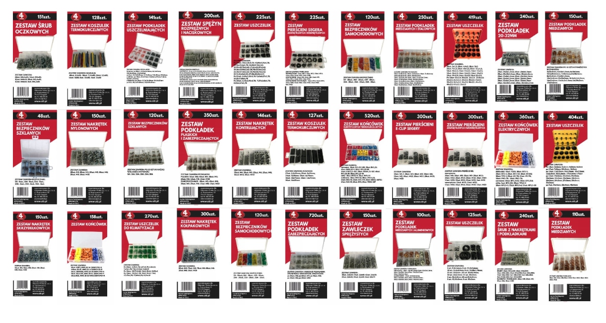 - вибір із 50 різних наборів, від шпильок до шпильок або гайок і ущільнень