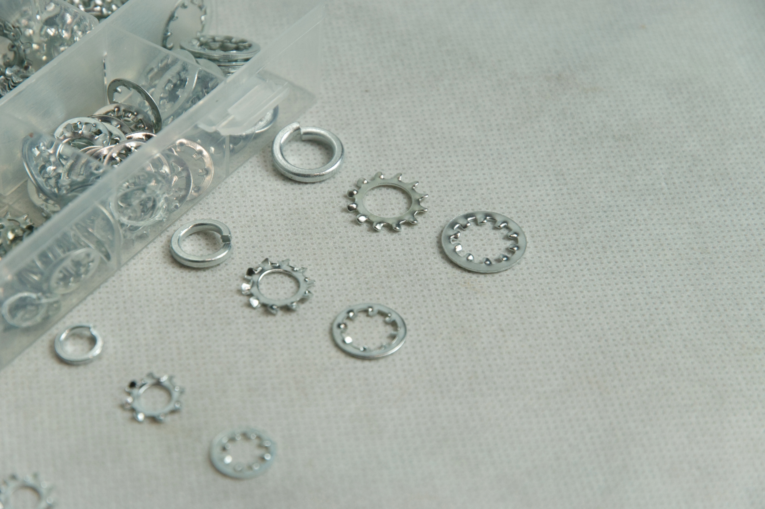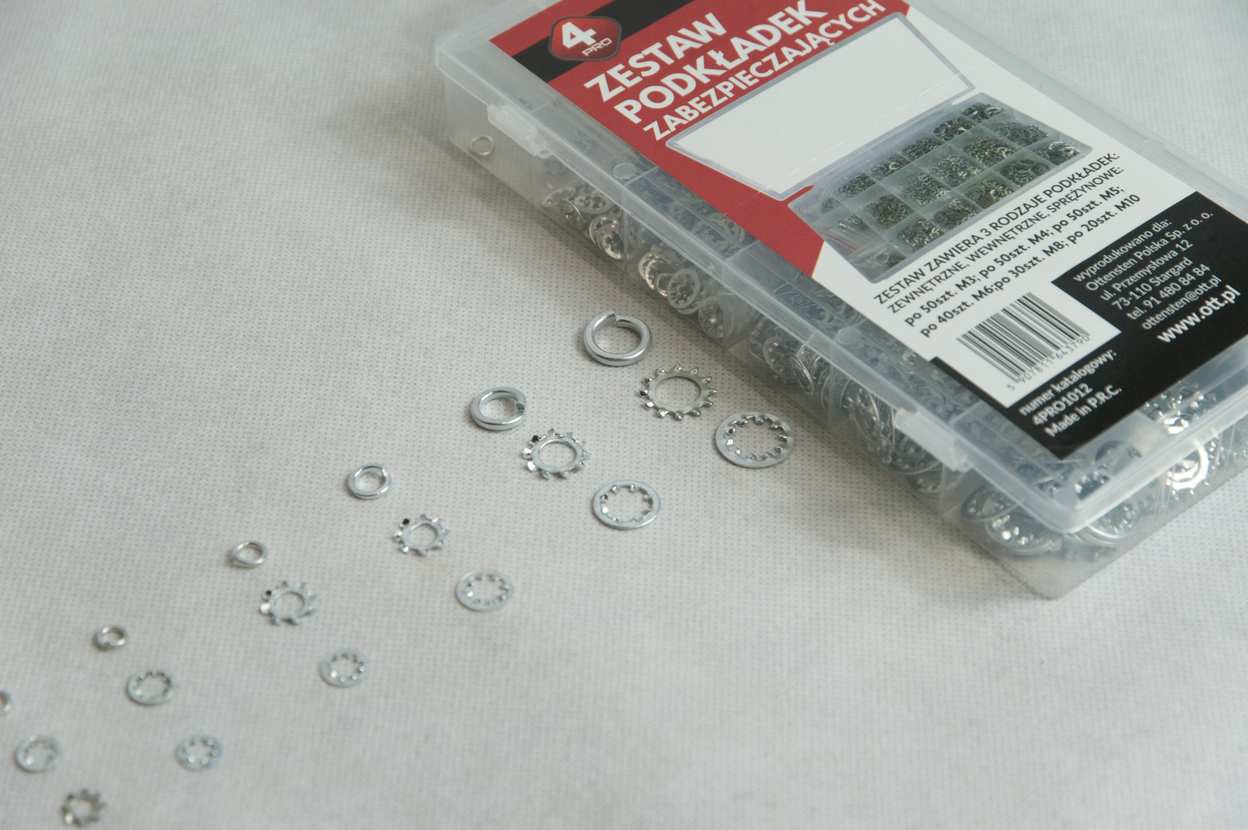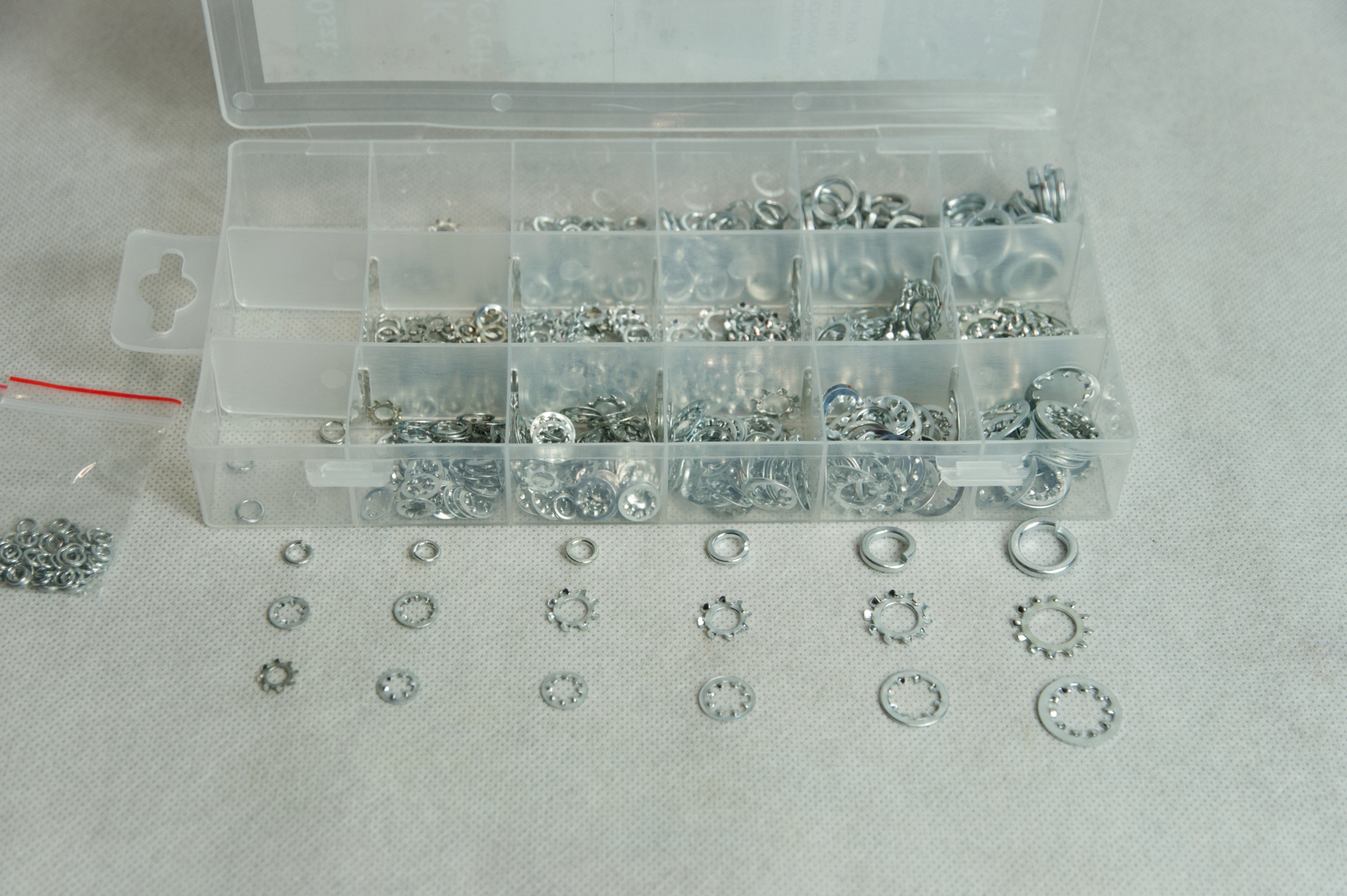 Набір містить 3 види прокладок у зручнійпрозорій коробці. Шайби виготовлені зоцинкованої сталі. Ідеально підходить для домашнього використання, майстерень і послуг.