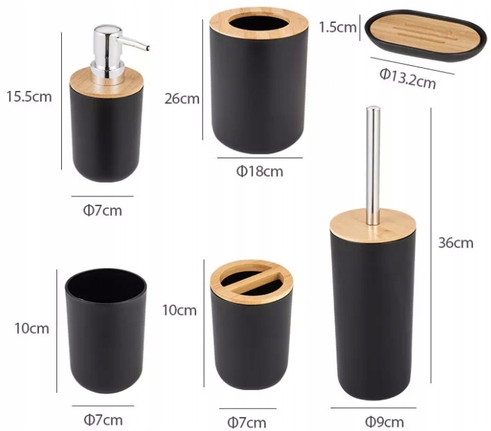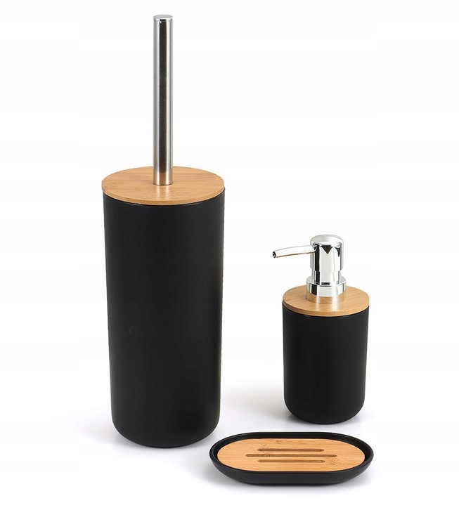 Глибокий, чорний, матовий матеріал приємний на дотик, а дизайн аксесуарів доповнений ідеально контрастними бамбуковими акцентами.