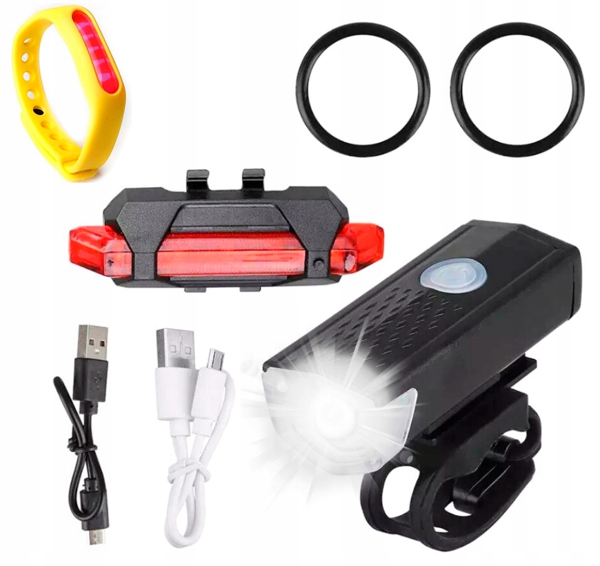 Резинки, що входять у комплект, полегшать швидке та ефективне встановлення набору. Їхня гнучкість дозволить вам адаптувати ліхтарі до будь-якого велосипеда та розмістити їх саме там, де вам потрібно.