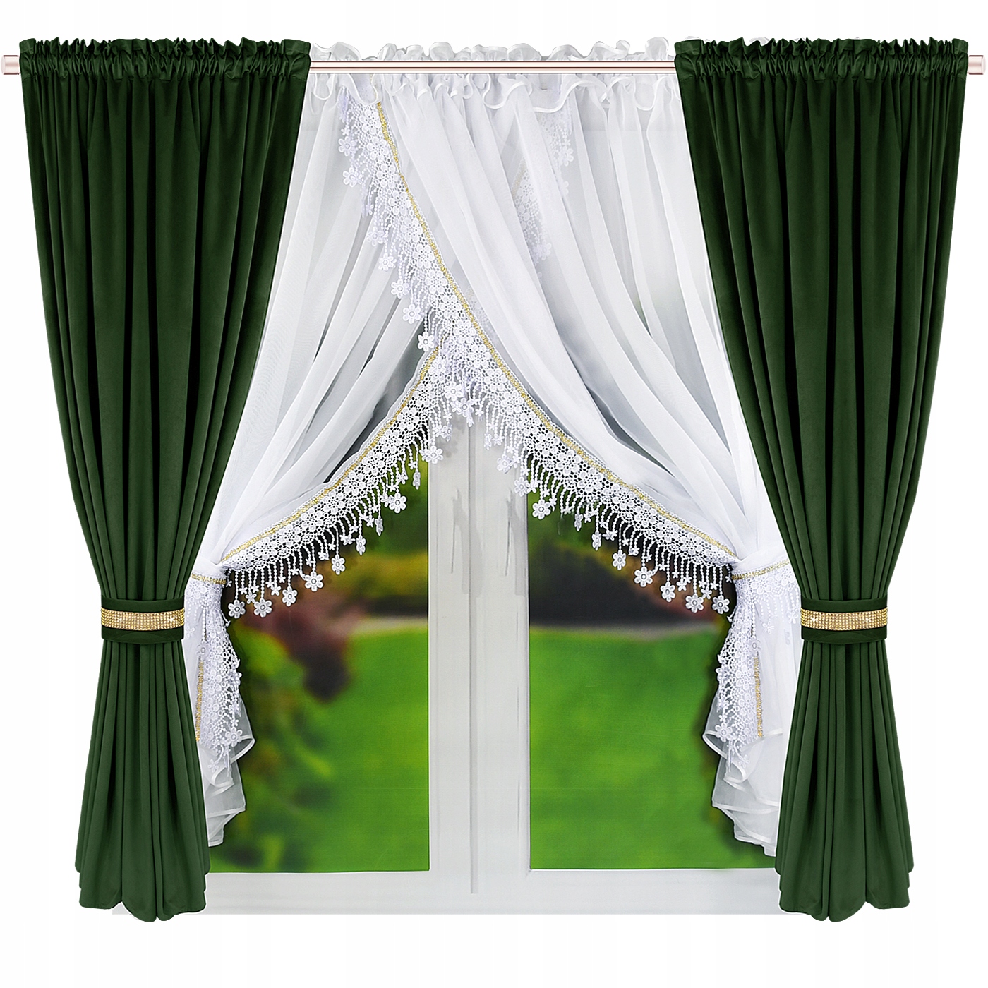 Представляємо розкішний декоративний комплект, який додасть блиску, елегантності та вишуканості Вашому інтер'єру - велюрові штори з гардиною, прикрашеною золотими цирконами та гіпюром. Цей унікальний набір створений для найвибагливіших клієнтів, які цінують красу та неповторність в оточенні.
