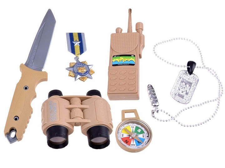 Військові іграшки, військові елементи зазвичай являють собою фігурки солдатів, що імітують поле бою, або кульові рушниці. Бойовики надихають творців іграшок, а також стають дедалі популярнішими серед наших малюків. Створюється все більше іграшок, які приваблюють своєю функціональністю і різноманітністю. Наш набір порадує багатьох шанувальників військових гаджетів і доповнить наряд під час костюмованої вечірки.