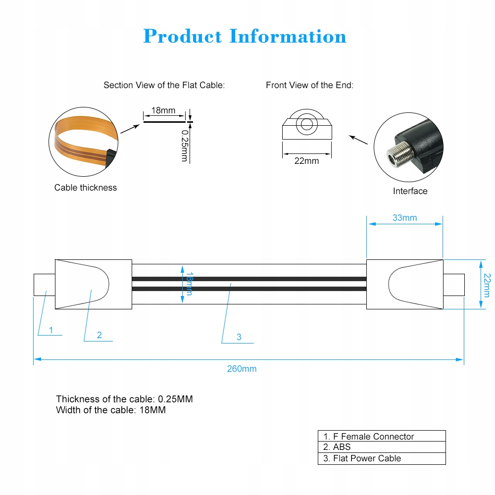 Надзвичайно тонкий плоский кабель живлення F-роз’єм підходить під двері вікна без свердління довжиною 26 см + F штекерний вхід/вихід лінії подовження лінії камери