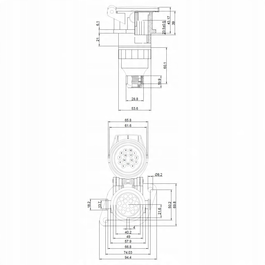 15-контактна розетка ADR 24 В - вилка для транспорту ADR