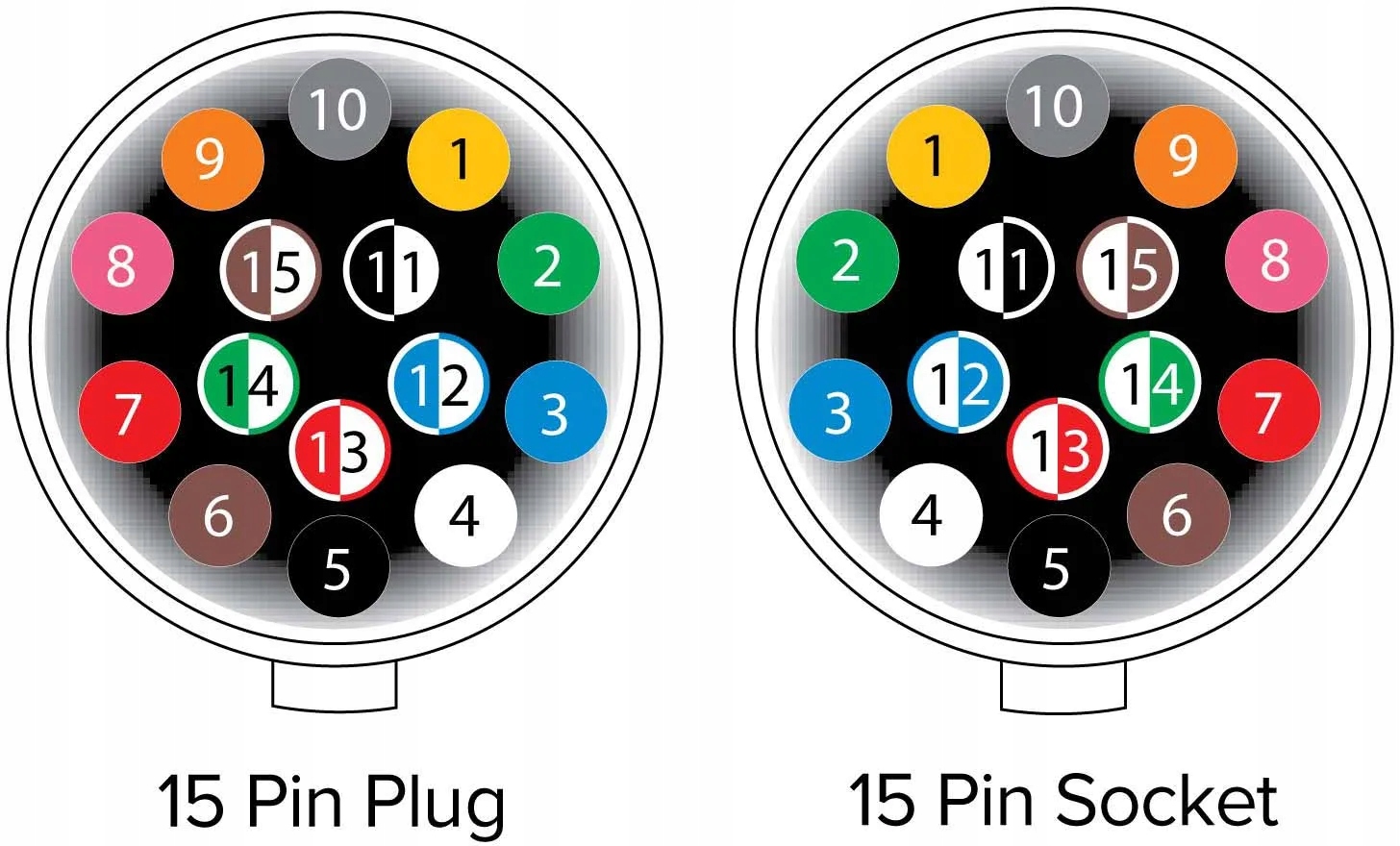 Професійний універсальний 15-контактний набір ADR дозволяє підключати та живити електромонтажу всіх типів причепів, напівпричепів та евакуаторів. 15-контактний роз’єм підтримує повний набір освітлення причепа, а також додаткові функції, такі як датчик зносу гальмівних колодок, індикатор гідравлічного гальма та механізми підйому осі.