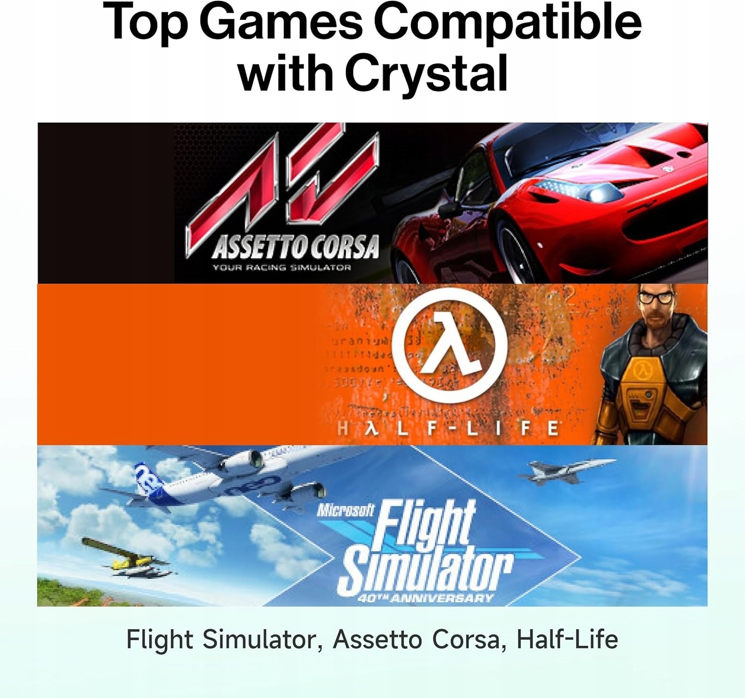 Завдяки 8 ГБ оперативної пам’яті та 256 ГБ масового зберігання, ви можете використовувати набір навушників в автономному режимі, після підключення DisplayPort 1.4AA USB-C дозволяє підключитися до ефективного комп'ютера для максимальної якості VR. Підтримка SteamVR через широку сумісність з його заголовками та додатками. Pimax Crystal - це чудовий вибір для гравців, професіоналів та ентузіастів VR.