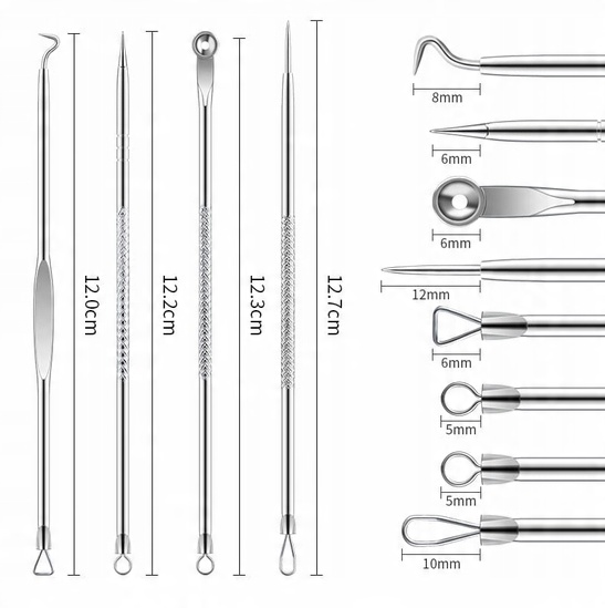 - Професійні ложки-петлі призначені для видалення чорних крапок та інших забруднень на обличчі