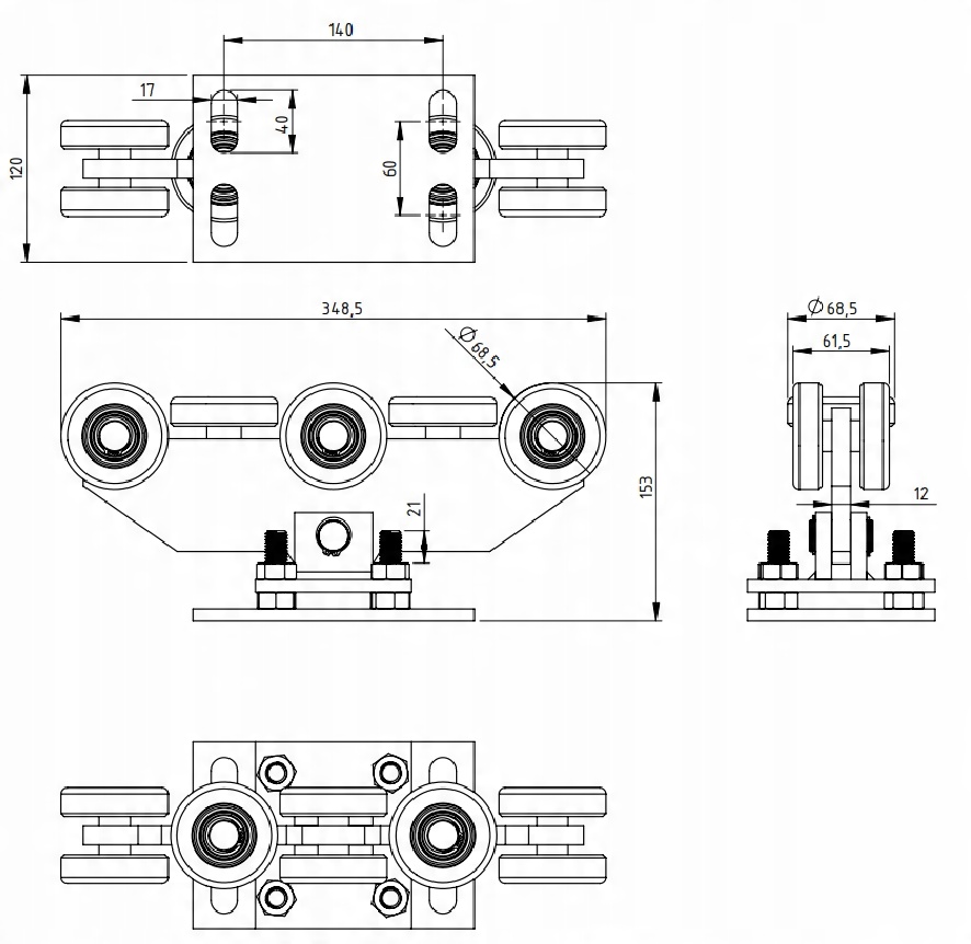 Пересувний комплект для відкатних воріт на профіль 80х80 ВИРОБНИК
