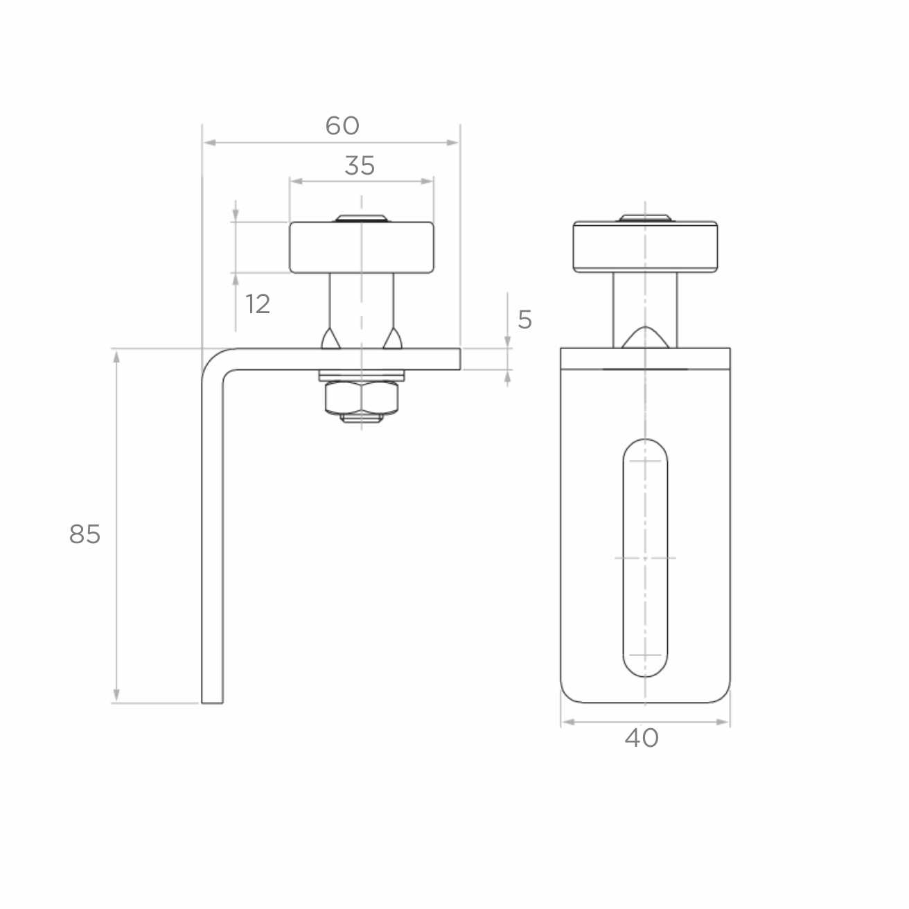 Вертикальний направляючий ролик fi 35 мм для U-профілю 40x40x2 мм