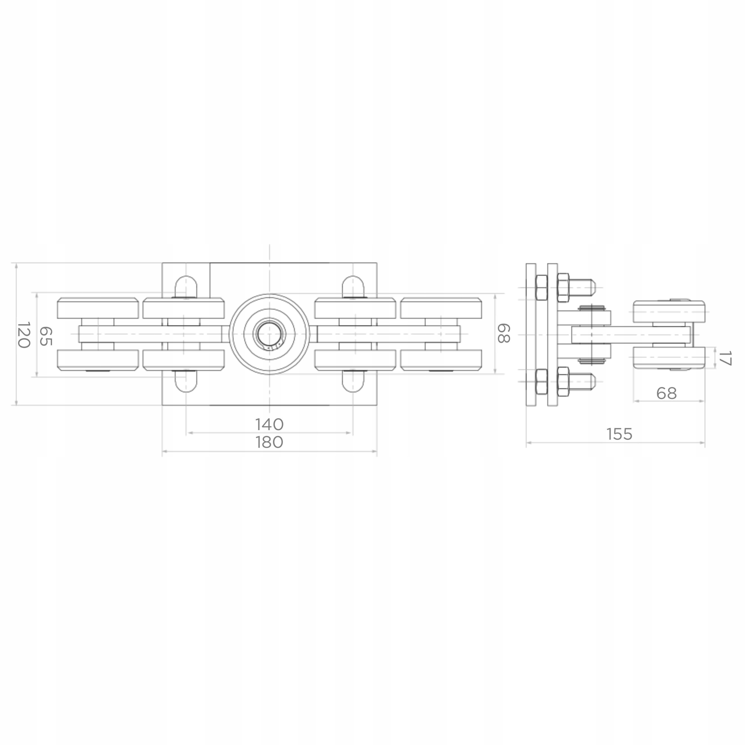 - Навідний ролик, призначений для рейки 80 × 80, забезпечує плавний і безпроблемний вхід воріт у виїмку.