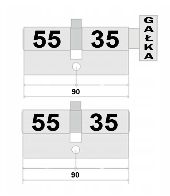 НАБІР ЦИЛІНДРОВИХ ВСТАВОК В СИСТЕМІ ОДНОГО КЛЮЧА 35/55 + G35/55 З ЛАТУННОЮ РУЧКОЮ ЗАМКУ НА 5 КЛЮЧІВ