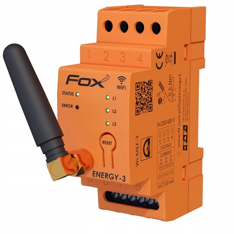 - 3-фазний, 2-сторонній, 4-квадрантний монітор споживання електроенергії, ідеально підходить, серед іншого, для нагляду за фотоелектричними установками та вимірювання тепла насоси;