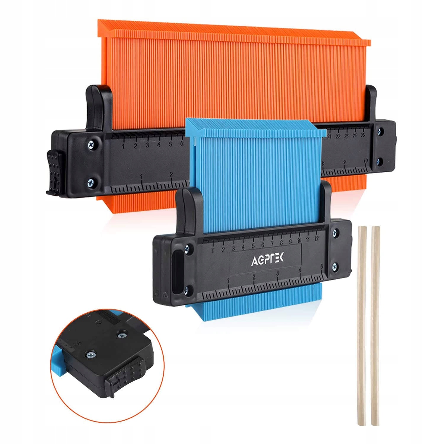 Набір із 2-х контурометрів від торгової марки AGPTEK, виготовлений з високоякісного ABS матеріалу. Вони мають функцію блокування, яка дозволяє виконувати точні вимірювання, усуваючи ризик неточності, спричиненої рухом. Замок з обох сторін зберігає форму незмінною, коли лінійку знято, тому ви можете точно дублювати та переміщувати візерунок у будь-яке місце.