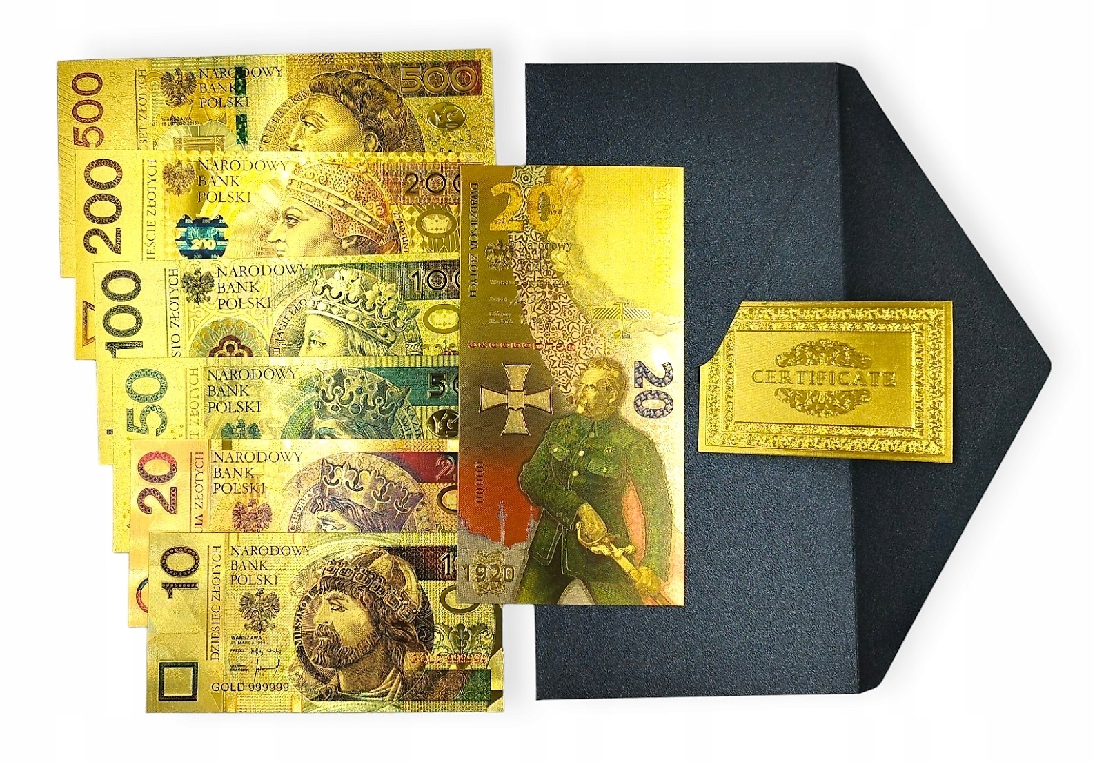 КОМПЛЕКТ З СЕРТИФІКАТОМ Польські банкноти з ПВХ Позолочений Бонус Унікальність