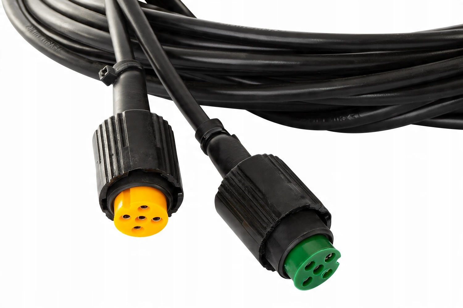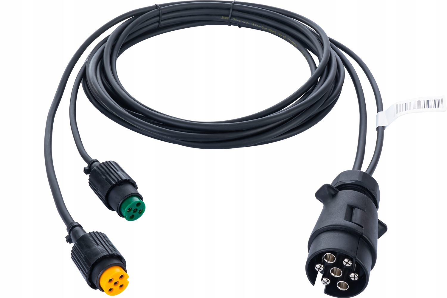 Електромонтаж для причепів фірми Mantes довжиною 4 метри. Він має 2 байонетні роз’єми 5-PIN і штекер 7-PIN.