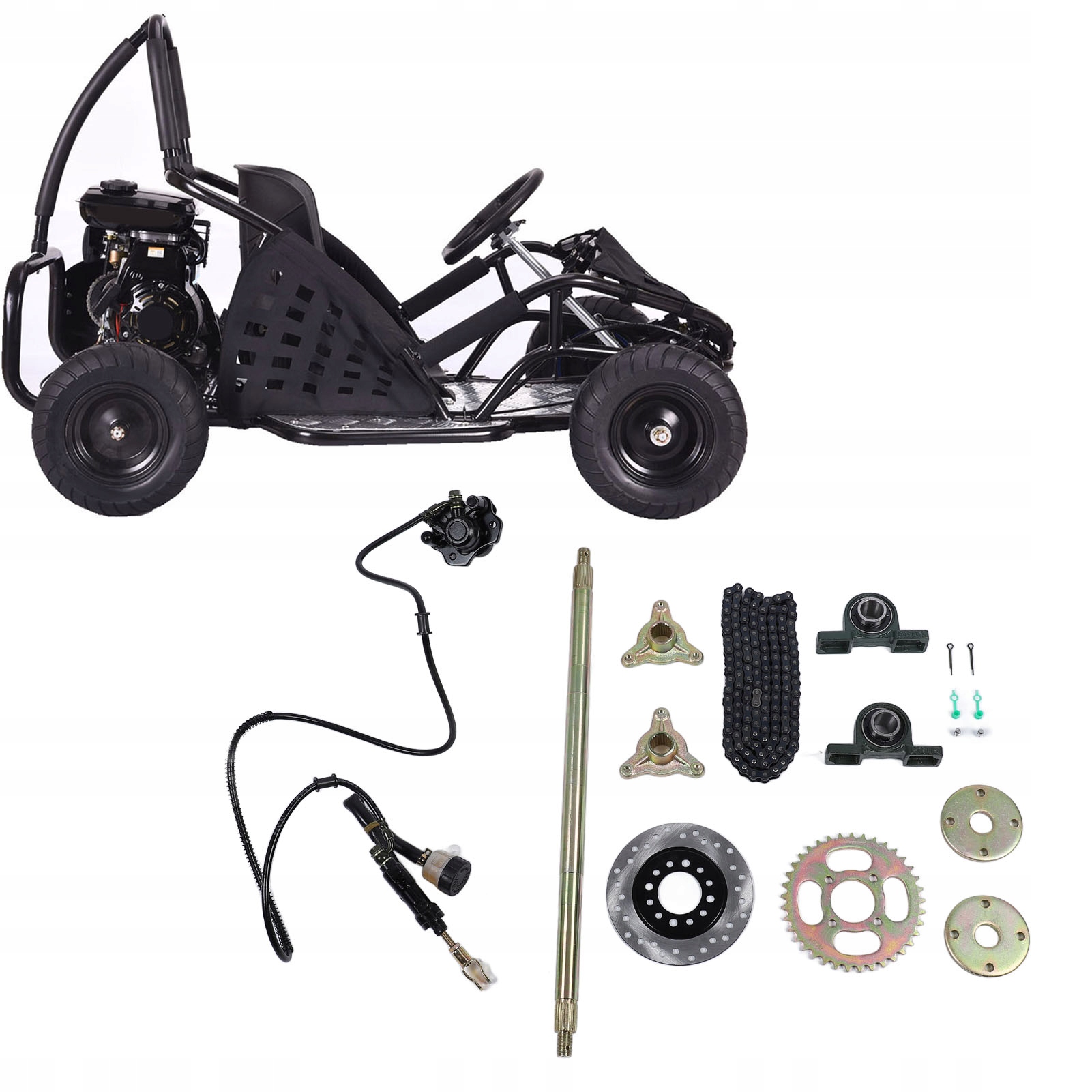 - Компоненти: задня вісь 600 мм, підшипник 205, фланець із 23 зубами та 4 отворами, зірочка 530 із 32 зубами, гальмівний диск діаметром 19 см, зірочки ручки, комплект головного гальмівного циліндра, гвинтовий штифт задньої осі, 140-ланка ланцюг