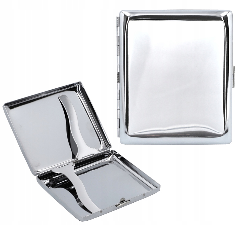 - металевий портсигар - кольору сріблястий із полірованою до блиску дзеркальною поверхнею,