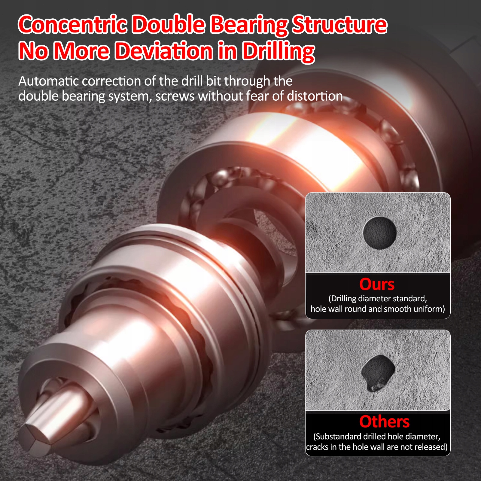 2. 【Переваги продукту】З повністю металевою собачкою для окремого патрона, міцніше затягується; Концентрична подвійна опорна конструкція, буріння без відхилення; Функція самонарізання шпинделя; Виріб з металевим перкусійним типом, бічна частина з головою кота та пряжкою на талії, проста у використанні.