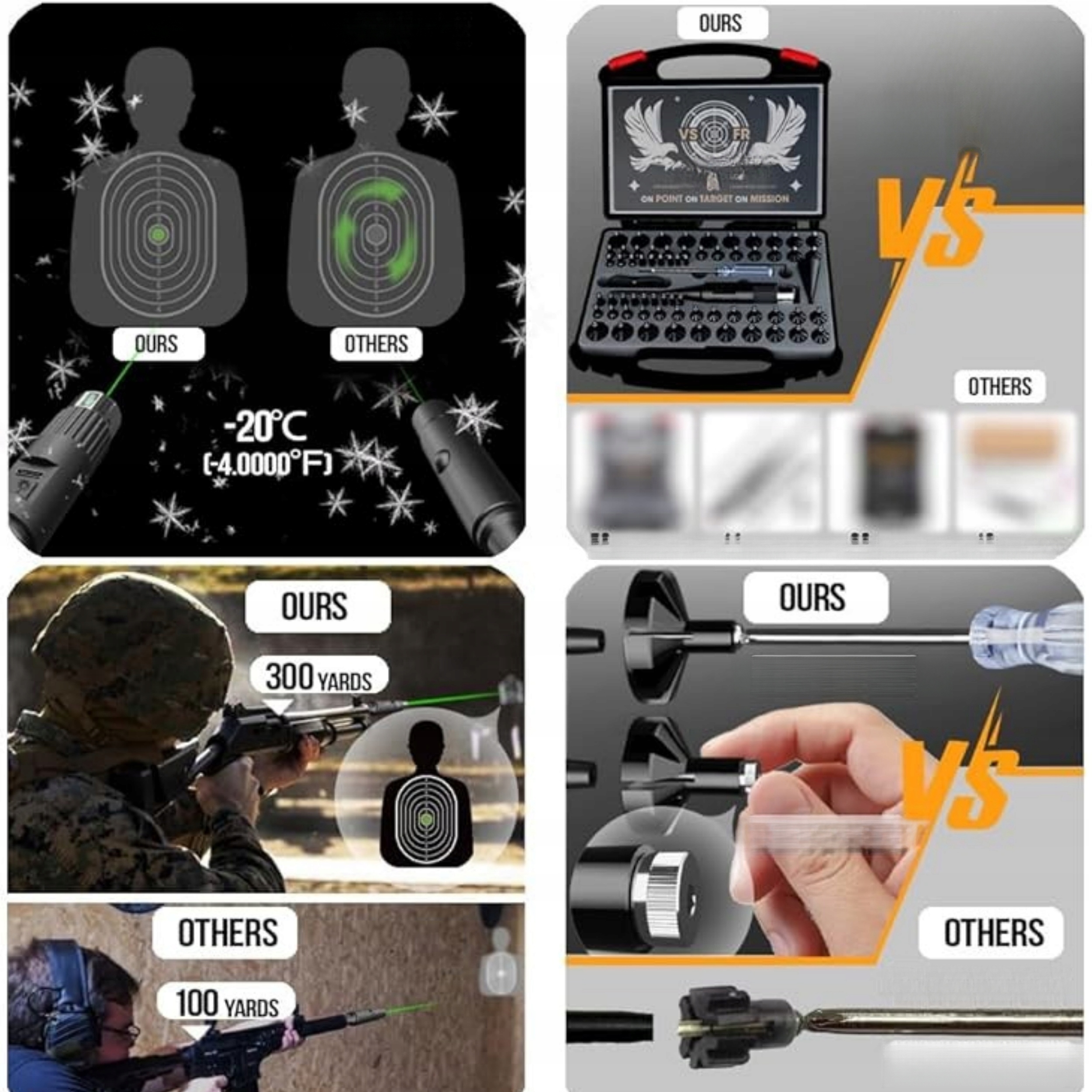 Потужний зелений лазер 520 нм, розроблений для обнулення на великій відстані: ультрастабільний зелений промінь професійного рівня забезпечує видимість 366 метрів, дозволяючи калібрувати на великій відстані поза приміщенням. Його можна використовувати на гвинтівках, дробовиках, пістолетах, револьверах, снайперських гвинтівках та іншій новій і старій вогнепальній зброї. Підвищте точність стрільби, заощадьте час і патрони.