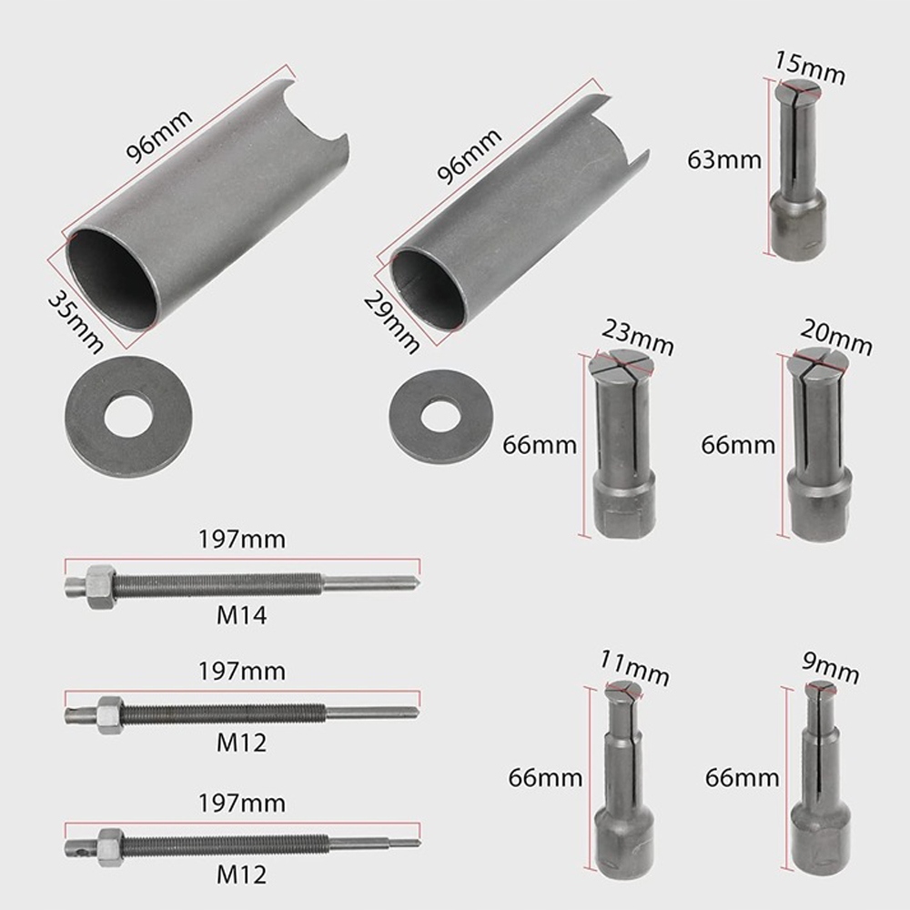 🏍️ Ідеальний інструмент для зняття підшипників мотоциклів:З’єднайте зовнішню різьбу 1/2" 3/4". Для зняття підшипників ковзання діаметром від 9 мм до 23 мм. Примітка: Для підшипників, які були досить твердими. Для виконання цього кроку вам знадобиться молоток.