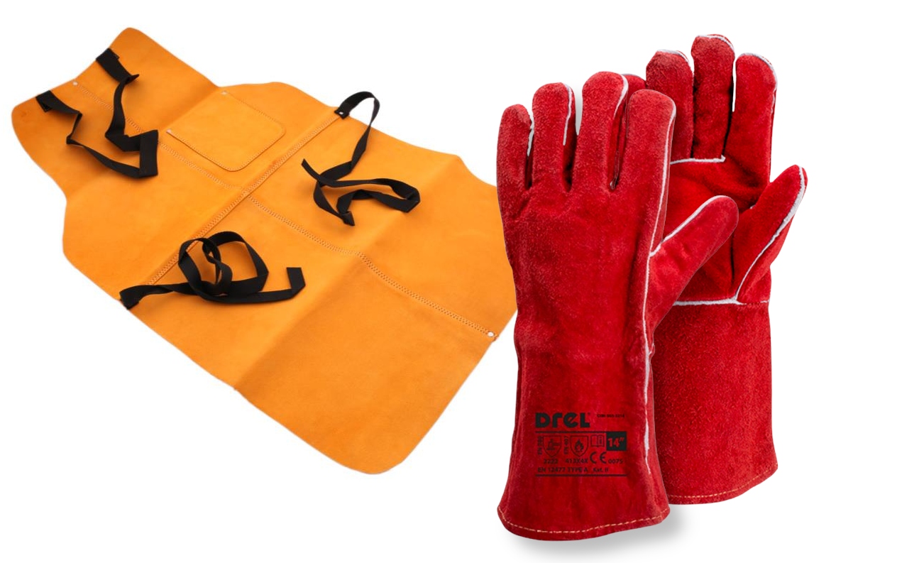 ЗАХИСНИЙ ШКІРЯНИЙ ЗВАРЮВАЛЬНИЙ ФАРТУХ ДЛЯ МАЙСТЕРНІ + КОМПЛЕКТ ШКІРЯНИХ ЗВАРЮВАЛЬНИХ РУКАВИЦЬ