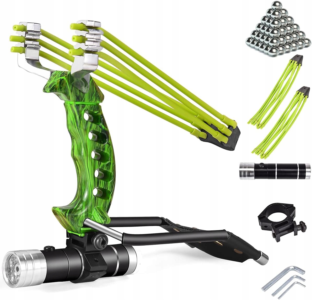 - Крім того, тактична рогатка особливо точна завдяки своїй міцній і зручній рукоятці, що робить її ефективним інструментом для ваших цілей.