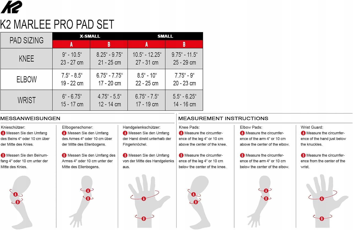 Розмір: S (коліно: A: 27-31 см B: 25-29 см / лікоть: A: 22-25 см B: 20-23 см / зап'ястя: A: 17-19 см B: 14-16 см)