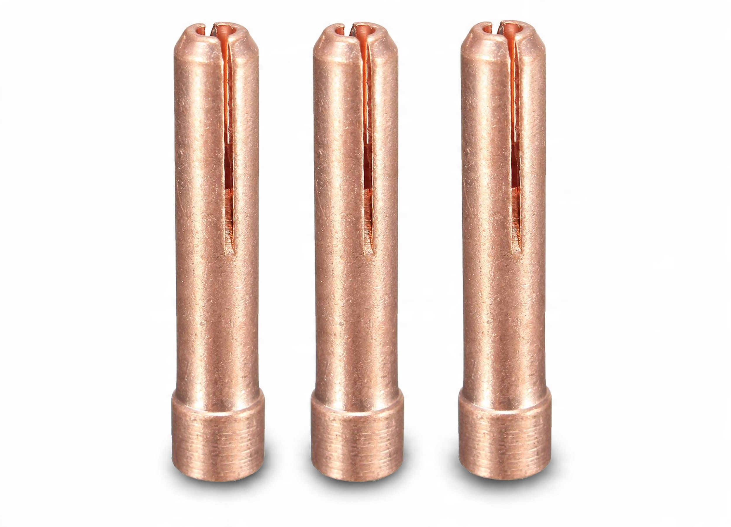 Затискна муфта TIG SR 26 для зварювальних пальників TIG згідно стандарту BINZLA (затискає вольфрамовий електрод). Гільза підбирається по діаметру вольфрамового електрода. У комплекті 3 гільзи діаметром 1,6/2,0/2,4 мм.