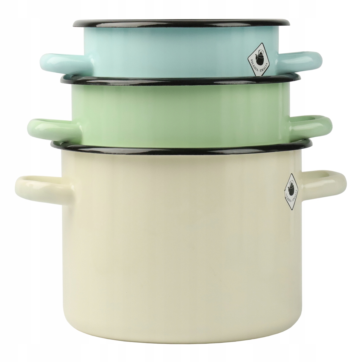 Komplet 3 garnków emaliowanych 2 / 3 / 4,5L INDUKCJA GAZ KOLOROWE GŁADKIE