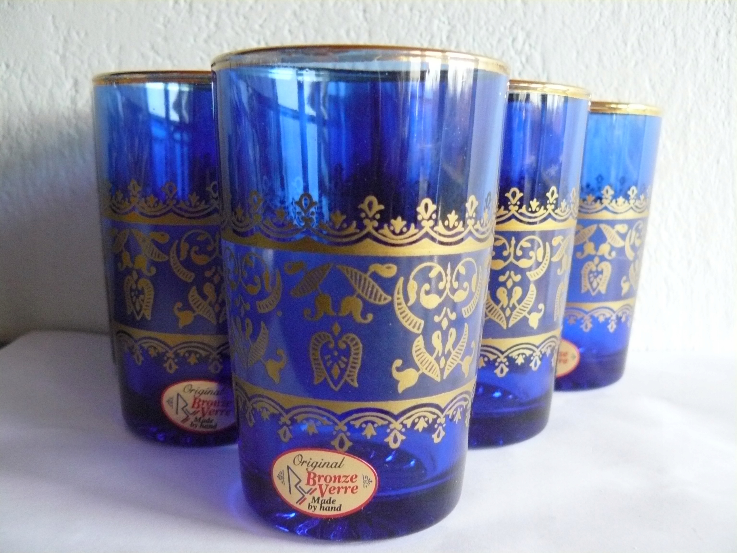 Набір із 6 келихів синього кобальту, прикрашених золотом.