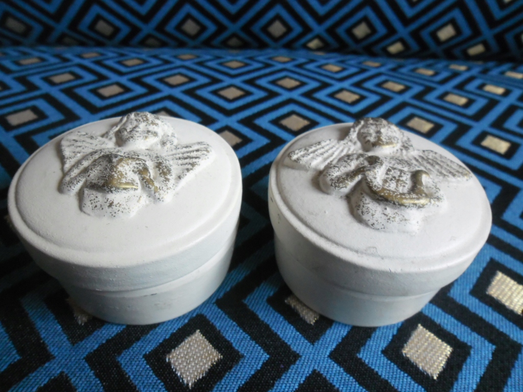 KOMPLET CERAMICZNYCH PUZDEREK Z ANIOŁKAMI!!