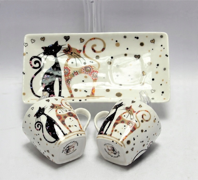 Унікальний набір 2 чашки еспресо з блюдцями для двох із серії The England Колекція b> - Закохані коти від Королеви Ізабелли. Набір прикрашений мотивом закоханих котів на тлі маленьких сердечок. Ємність чашки 80 мл (ємність вимірюється до краю чашки). Все було зроблено з високоякісної білої порцеляни Fine Bone China. Додатковою перевагою чашок є велика тарілка, на якій можна пригощати гостей солодощами.