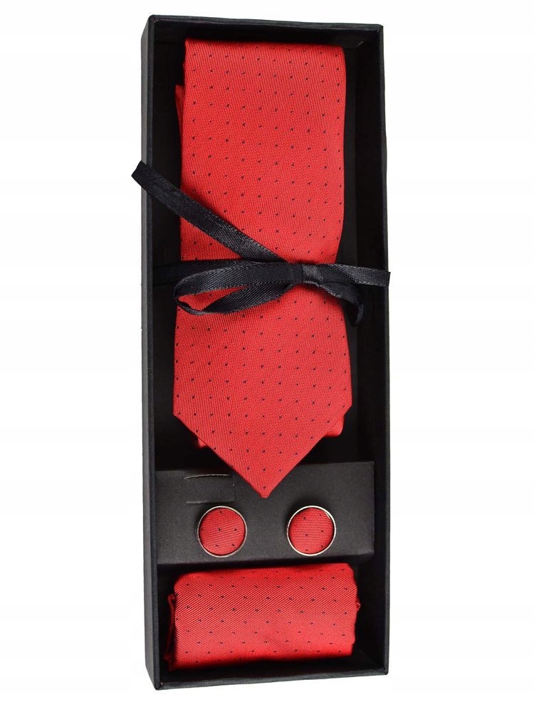 KOMPLET KRAWAT POSZETKA SPINKI CZERWONY