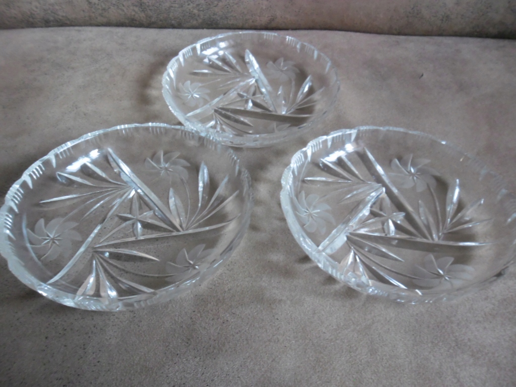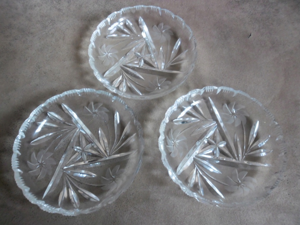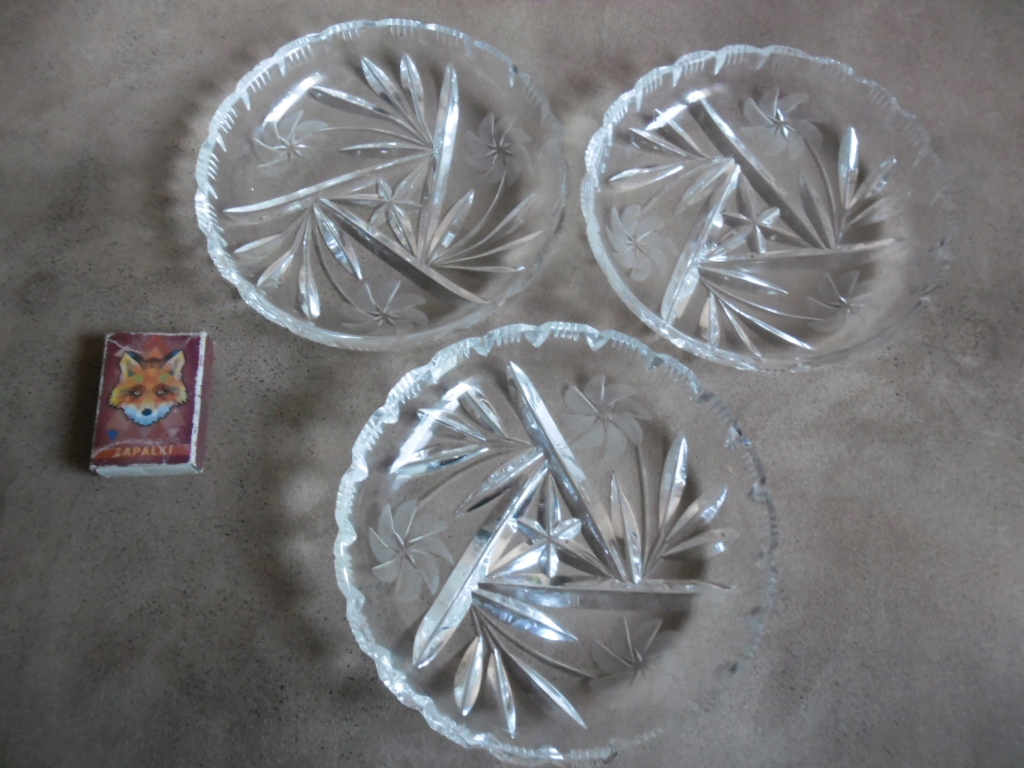 KOMPLET PIĘKNYCH STARYCH TALERZTKÓW KRYSZTAŁOWYCH!