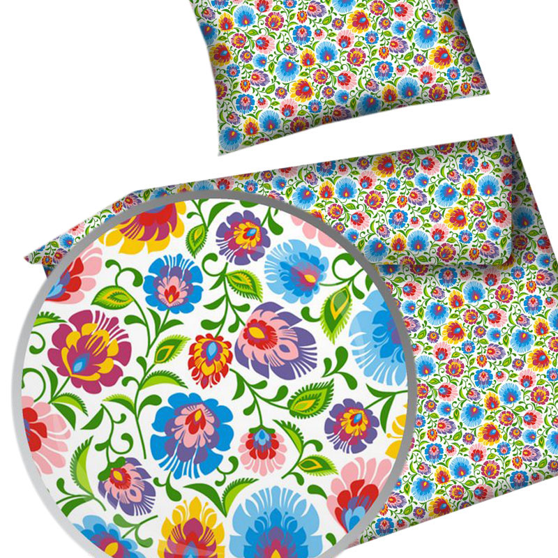 KOMPLET POŚCIELI SŁOWIAŃSKIEJ KWIATY FOLK ŁOWICKA