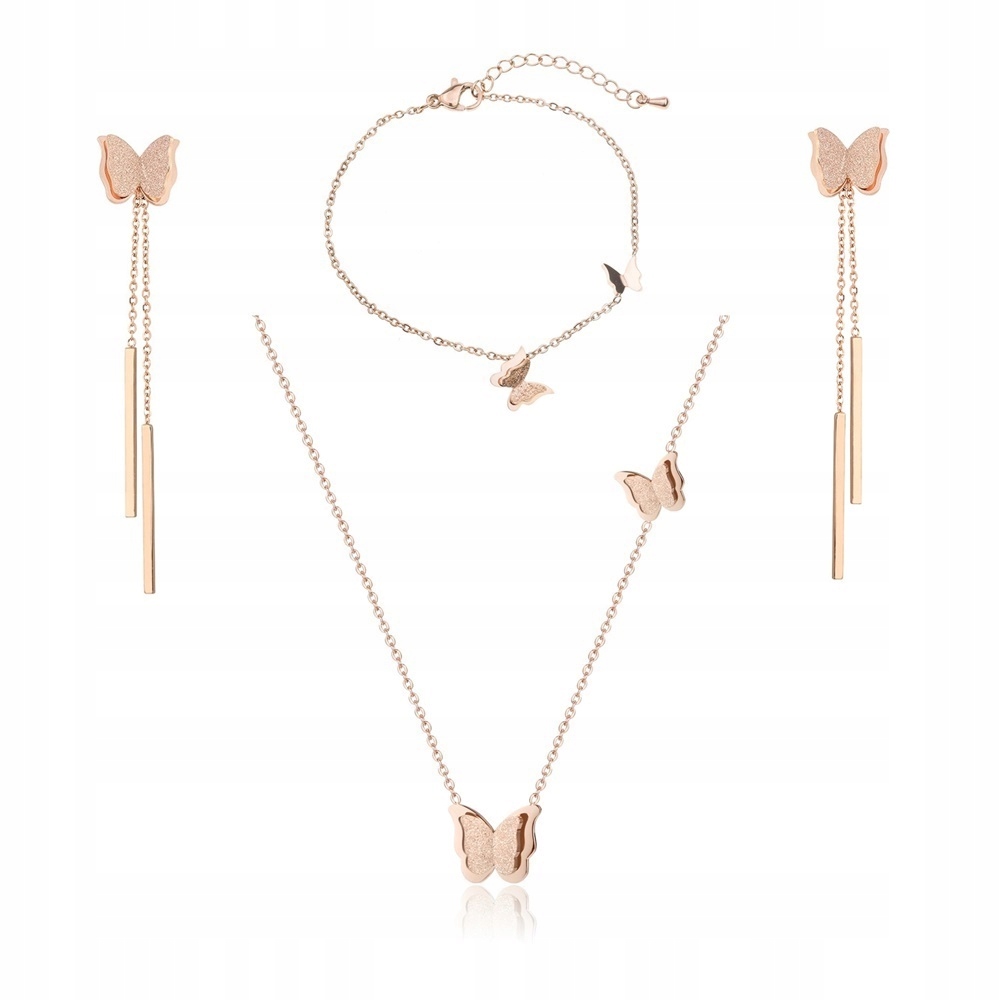 Komplet Różowe Złoto Stal Chirurgiczna Motyle Eleganckie Pudełko Prezentowe